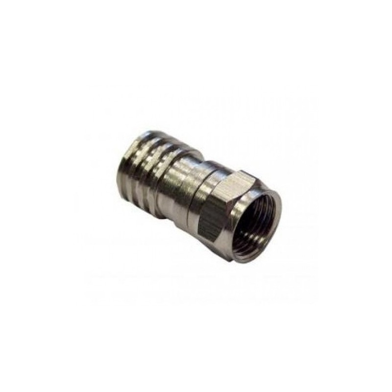 Mufă F cu sertizare pentru cablu RG6, echipată cu inel de cauciuc pentru o etanșare eficientă și protecție împotriva umezelii. Asigură o conexiune stabilă și minimizarea pierderilor de semnal, fiind ideală pentru instalații de televiziune prin cablu, satelit și CCTV. Construcția robustă oferă durabilitate și rezistență la factori de mediu.